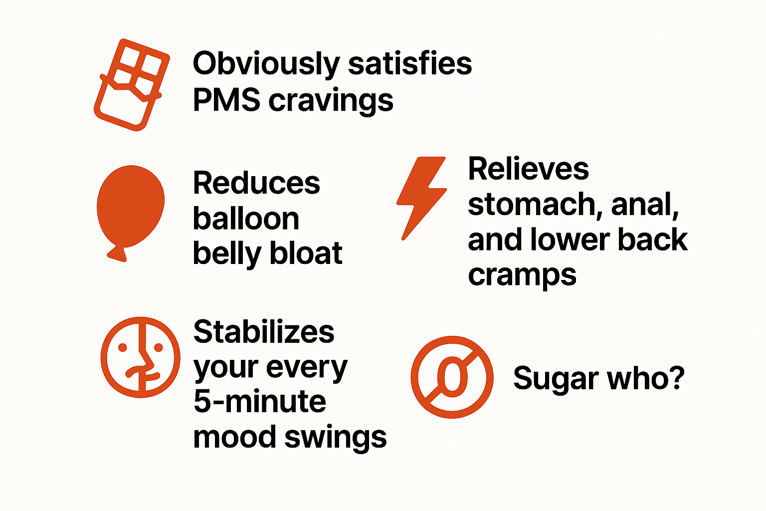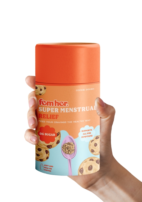 After 300,000 years of women menstruating, Femher is the first PMS relief that feeds your cookie monster cravings in a healthier way while relieving PMS symptoms at the same time with clean, science-backed ingredients.